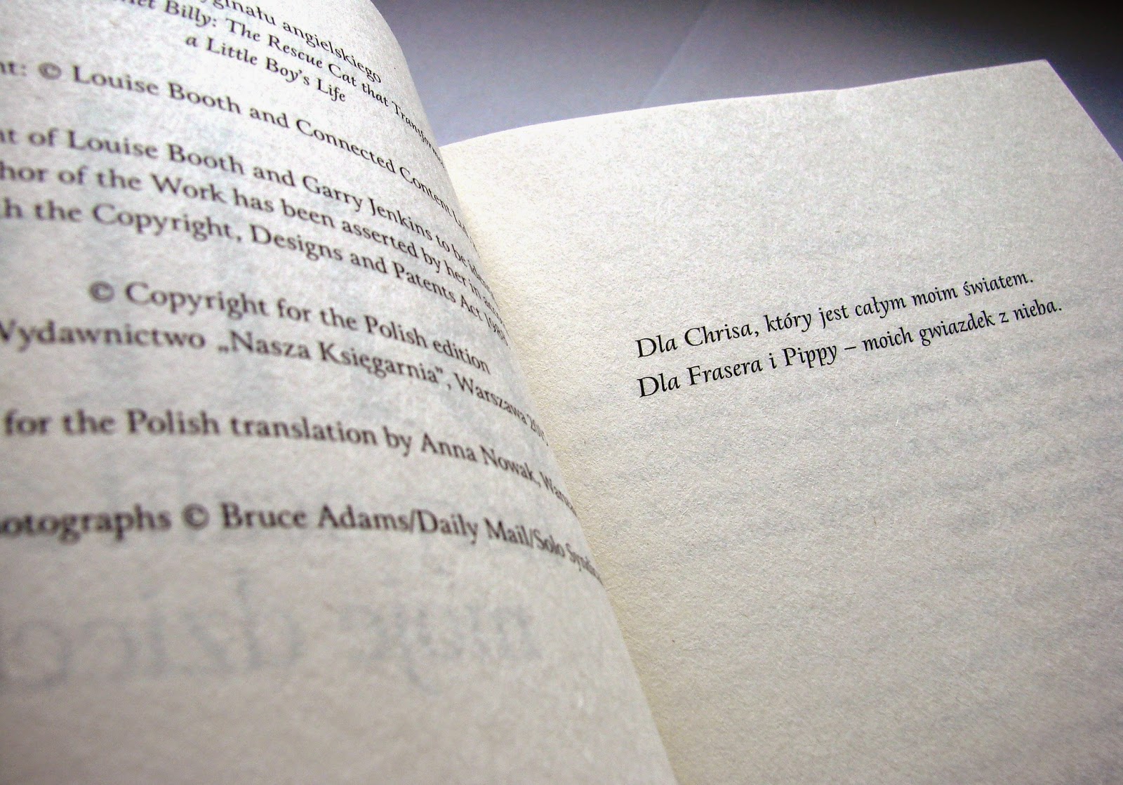Gdy byłam dzieckiem, nasz pies został wywieziony do lasu i pozostawiony sam sobie. Od tamtej pory nie nawiązałam żadnej głębszej relacji człowiek-zwierzę i nie wiem, czy to się jeszcze uda, ale Billy’ego, o którym pisze Louise Booth, pokochałam z całego serca. Inteligentny kot, nie ma co (niektórzy ludzie mogliby się od niego wiele nauczyć). I uwierzyłam Louise, która na początku nie dowierzała swoim przypuszczeniom: dzięki przyjaźni kota autystyk Fraser otworzył się na świat i ludzi.