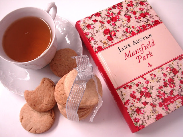 Przez większą część książki Fanny Price była dla mnie szarą, nijaką, bezpłciową, bez żadnych właściwości choć całkiem miłą dziewczyną. Aż brało mnie zdziwienie, że Jane Austen stworzyła kawał niezłej lektury i tak beznadziejną główną bohaterkę, którą miałam ochotę potrząsnąć. „Mansfield Park” to kawałek dobrej lektury. Smakuje jak… jak… angielskie ciasteczka rzecz jasna! Czytając tę pełną grzeczności i uprzejmości towarzyskich książkę, gdzie towarzystwo spędza czas na popołudniowych herbatkach i sutych kolacjach, chodziła mi po głowie angielska kuchnia. A konkretnie angielskie ciasteczka.