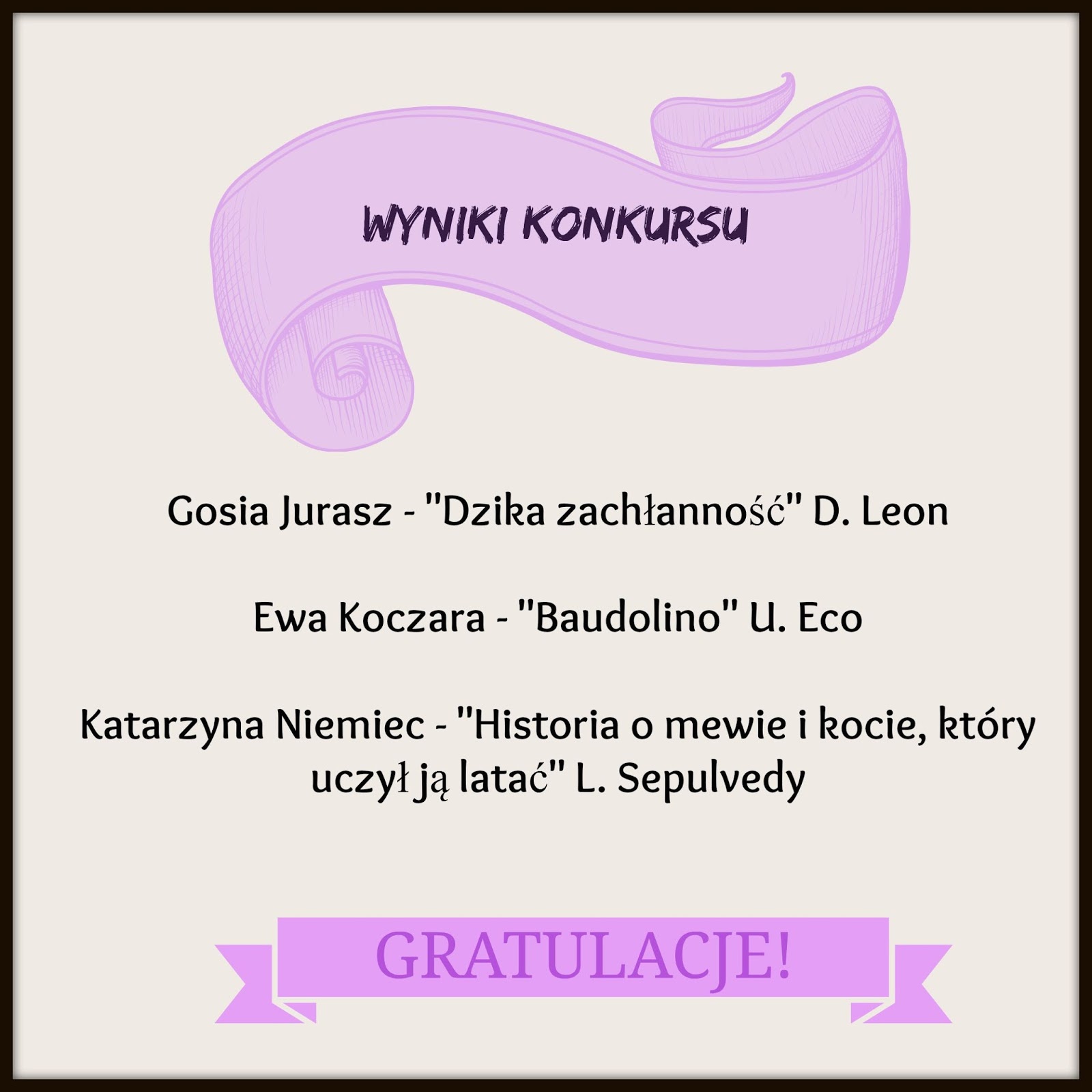 Dziękuję Wam za udział i zainteresowanie książkami od Noir sur Blanc. Oczywiście, chciałabym, aby wszyscy zostali nagrodzeni, ale jak to zwykle bywa, chętnych było więcej niż nagród:-) Losowanie nadzorowała moja starsza siostra (ekonomistka i księgowa), a zwycięzców wylosowały dzieci – mój syn oraz siostrzenica. Nagrody otrzymują: