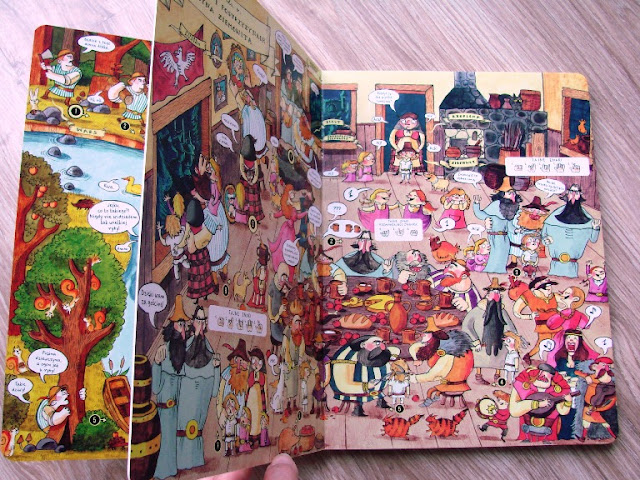 Książka utrzymana jest w konwencji jednoplanszowych komiksów. To, co nie zostało dopowiedziane w tekście, można doczytać w „chmurkach”, a jeszcze więcej dopowiedzieć na podstawie świetnych ilustracji Nikoli Kucharskiej, młodej i zdolnej ilustratorki i projektantki, która nad swoim dziełem pracowała pół roku. Nikola Kucharska prowadzi blog pod swoim nazwiskiem, gdzie możecie podziwiać jej twórczość: od komiksów, ilustracji, przez szkice po projektowanie graficzne. Ta maksymalnie skondensowana treść legend, o której wspominałam wcześniej, to zabieg celowy. Książka jest pomyślana tak, by legendy były opowiadane przez rodziców, którzy wodzą palcem po kolejnych scenach, żeby dziecko mogło samo na bieżąco śledzić fabułę.