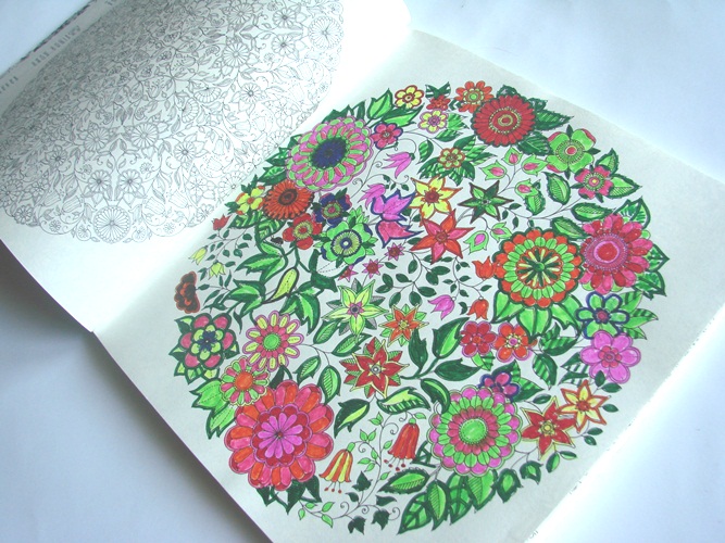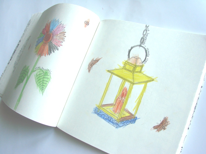 „Tajemny ogród” jest świetną zabawą dla całej rodziny. Dzieci wiele razy próbowały pozbawić mnie przyjemności kolorowania i często musiałam robić to w ukryciu. Ale oczywiście pozwoliłam im odbyć tę magiczną podróż. Oto efekty podróży mojego syna: